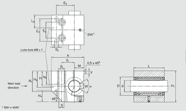 力士樂直線導(dǎo)套R107182520,載荷作用于開式滾珠導(dǎo)套的開口處時,將出現(xiàn)額定載荷的大幅下降。為了避免出現(xiàn)這種情況和實現(xiàn)可選圓周定位,開發(fā)了側(cè)向開式輕型款式的直線導(dǎo)套組件。